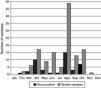 Peaks of viral infections were observed primarily during March (33.3%; n=6), April (58.8% positivity; n=17), May (33.3%; n=9), August (30.6% positivity; n=49), and October (41.2% positivity; n=17). However, viruses were detected in samples all year round. There was no sample collection during the months of January and December and only one sample was collected during November (Fig. 3).