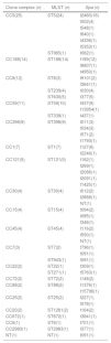 | Clone complex (n) | MLST (n) | Spa (n) |